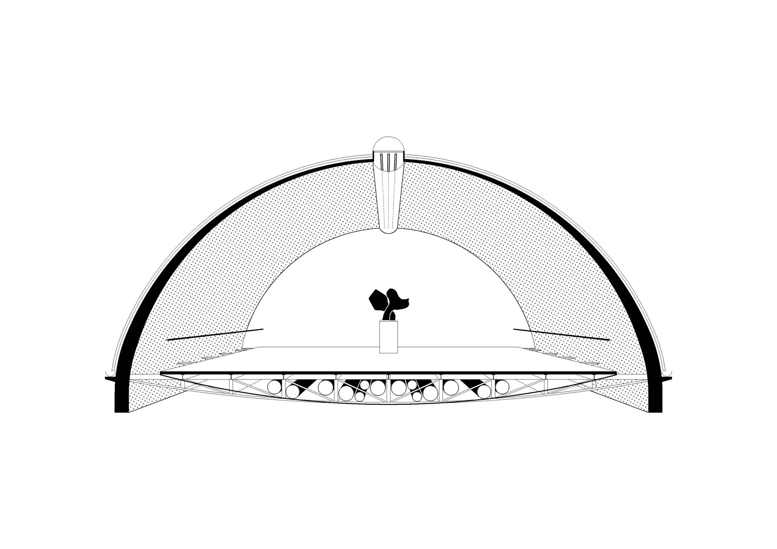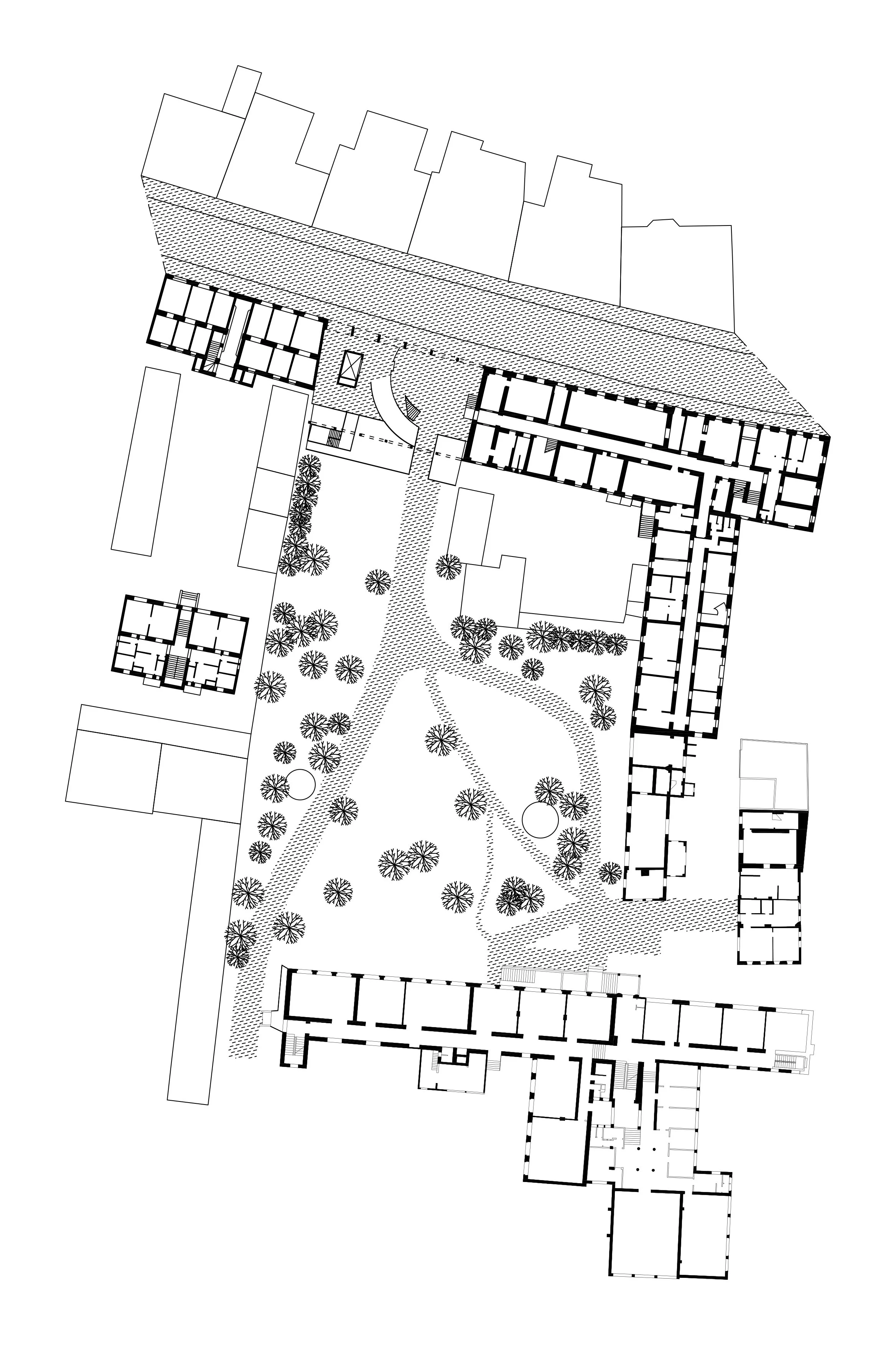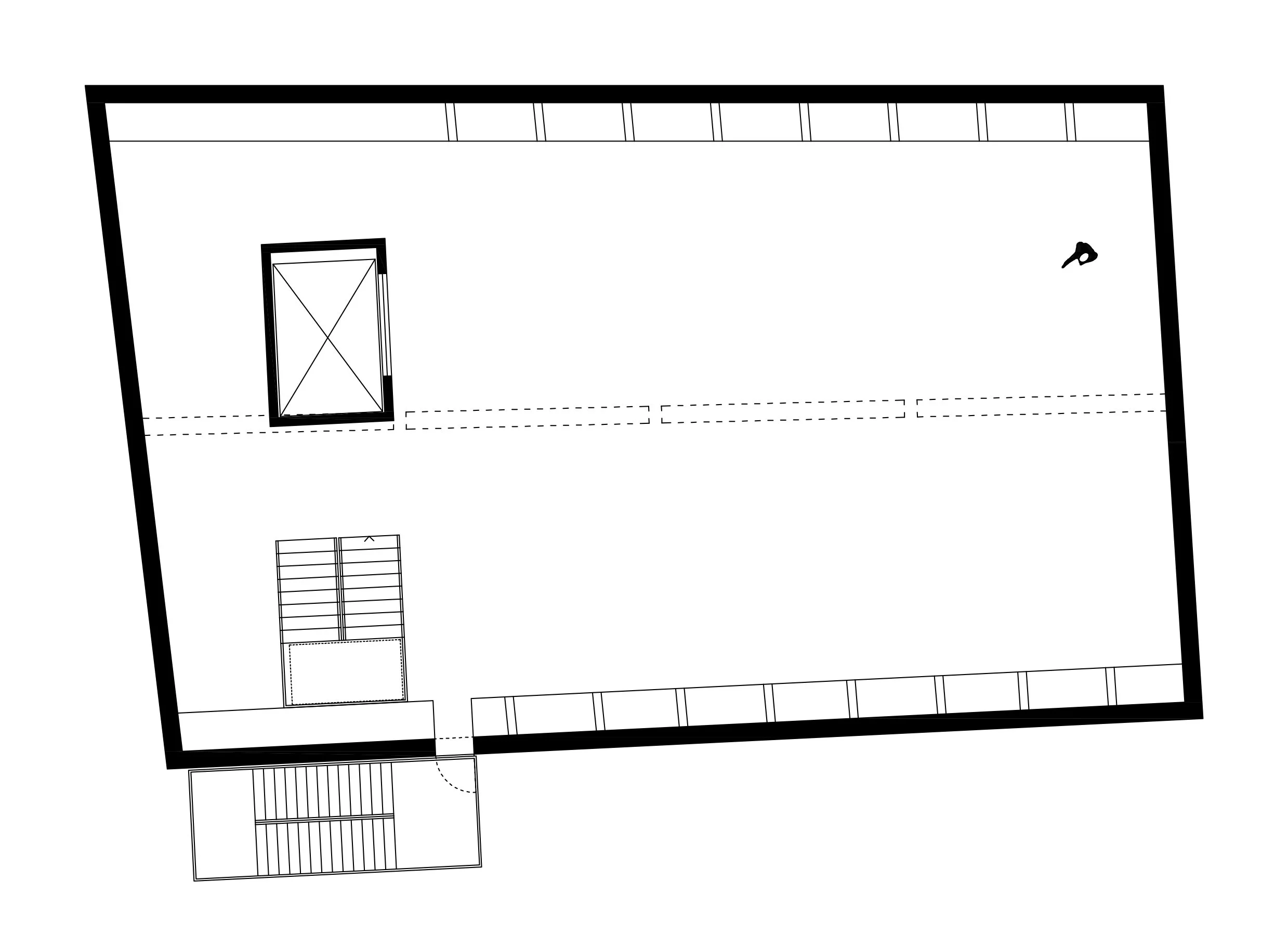 Oslobođeno prizemlje kuće stvara gradsku vežu: prazninu omeđenu Ilicom, parkom i zabatima susjednih kuća. Zauzimanje prostora u potpunosti je omogućeno, zapravo, poželjno: veža je ulaz, izložbeni prostor ili pak obična tramvajska stanica. Svačija i potpuna praznina programski razdvaja kuću Aluartforuma.