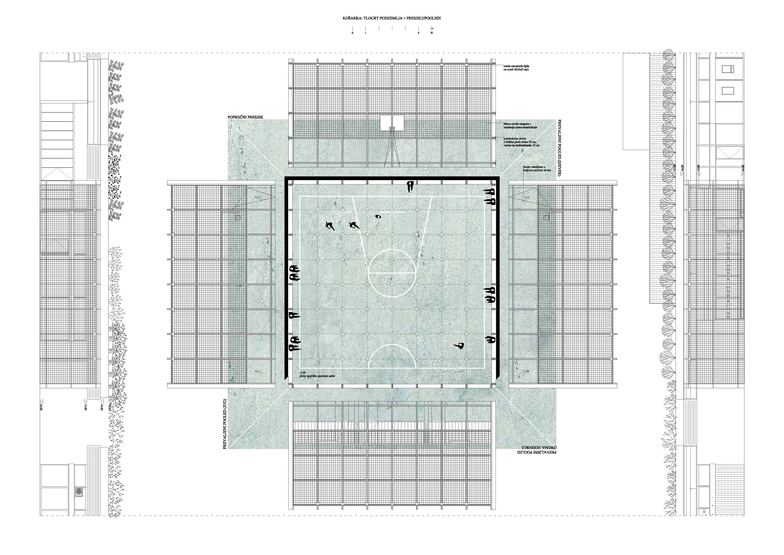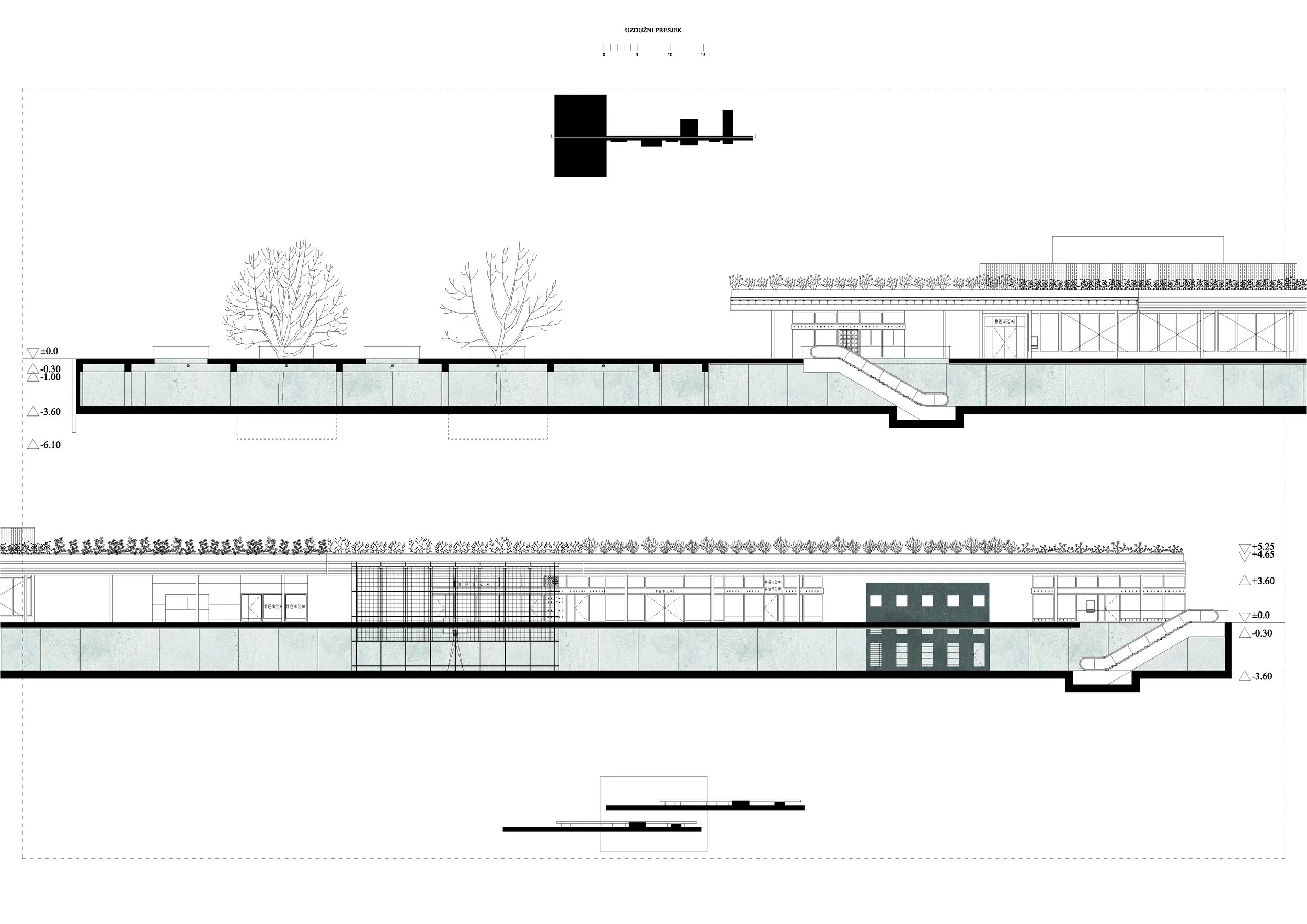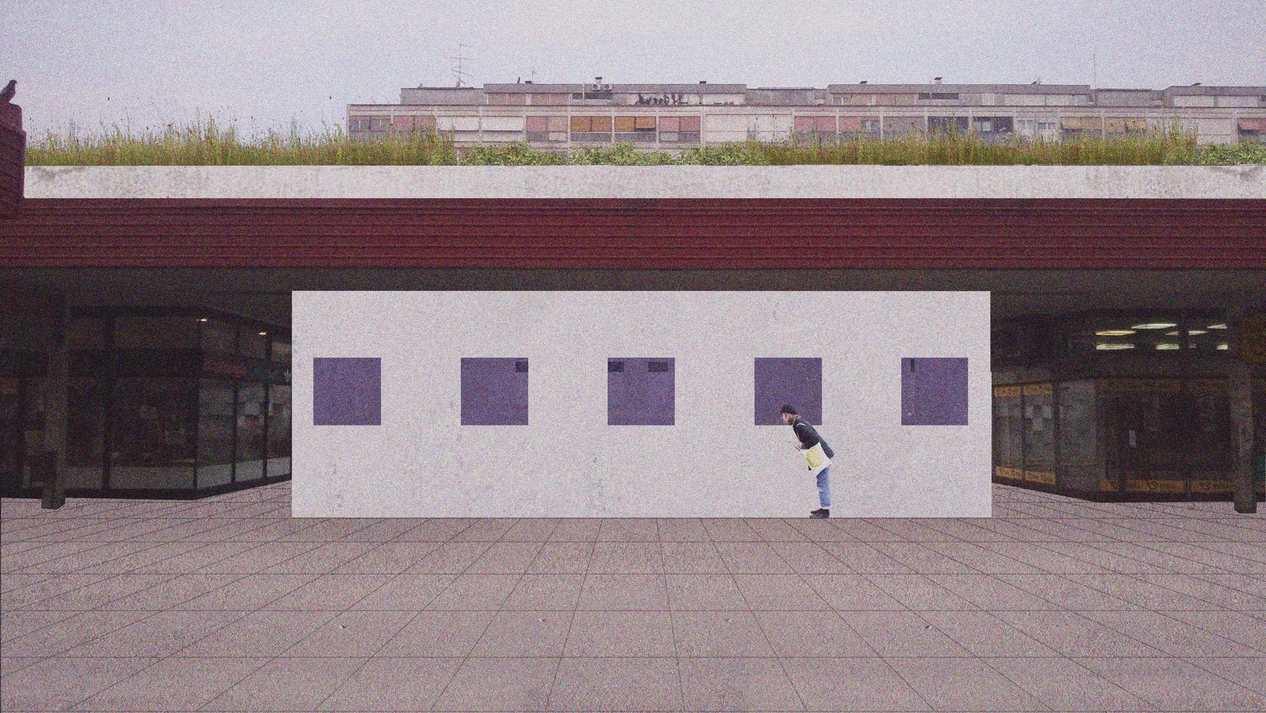 Izgrađeni prostor - centar naselja - određen je ideologijom svoga vremena. Novi sloj javnih sadržaja širi se neizgrađenim prostorom, podzemljem. Ispražnjena kuća, tri sobe s hodnikom, stvara nove slike povijesnog prostora. Volumeni upuštenih soba izrastaju iz zemlje, zauzimajući dijelove nekadašnje pješačke površine. Oduzeto nadoknađuju scenografijama; sobe su jednako naseljene i promatrane: niz je novih mogućnosti.